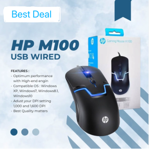 Hp M100 Usb Wired Gaming Optical Mouse With Led Backlight And Adjustable 1000/1600 Dpi Settings - 3 Buttons For Gaming Gamers